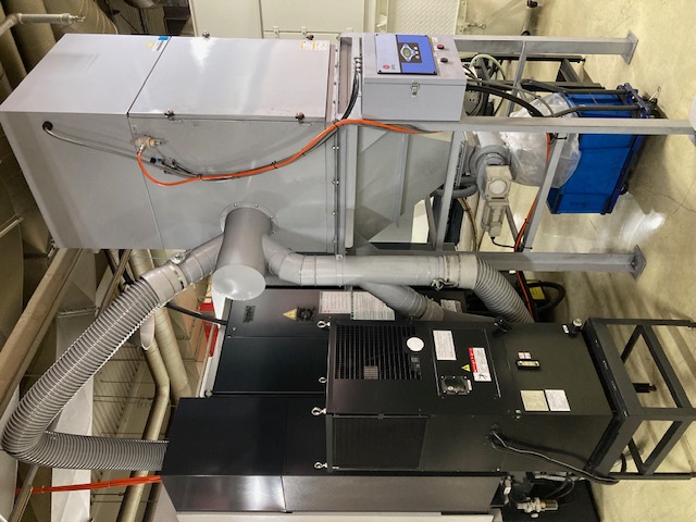 グラファイト仕様のMCです。クーラントタンクはありません。集塵機:新東工業FXN-VR ミストコレクタ:アマノMZ-10が付属します。