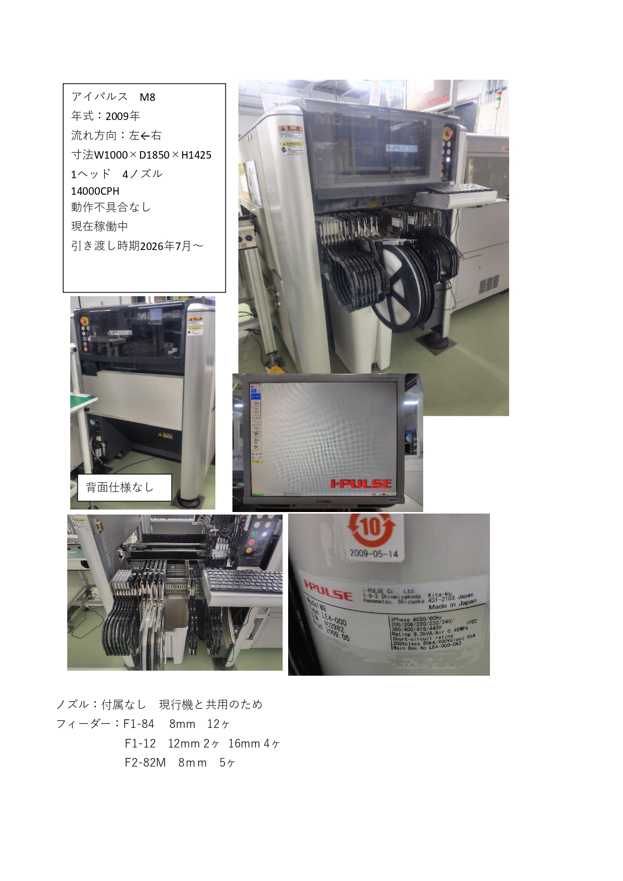 省スペースで設置可能なマウンターです。年式のわりに稼働時間も短く動作良好です。お気軽にご質問ください。