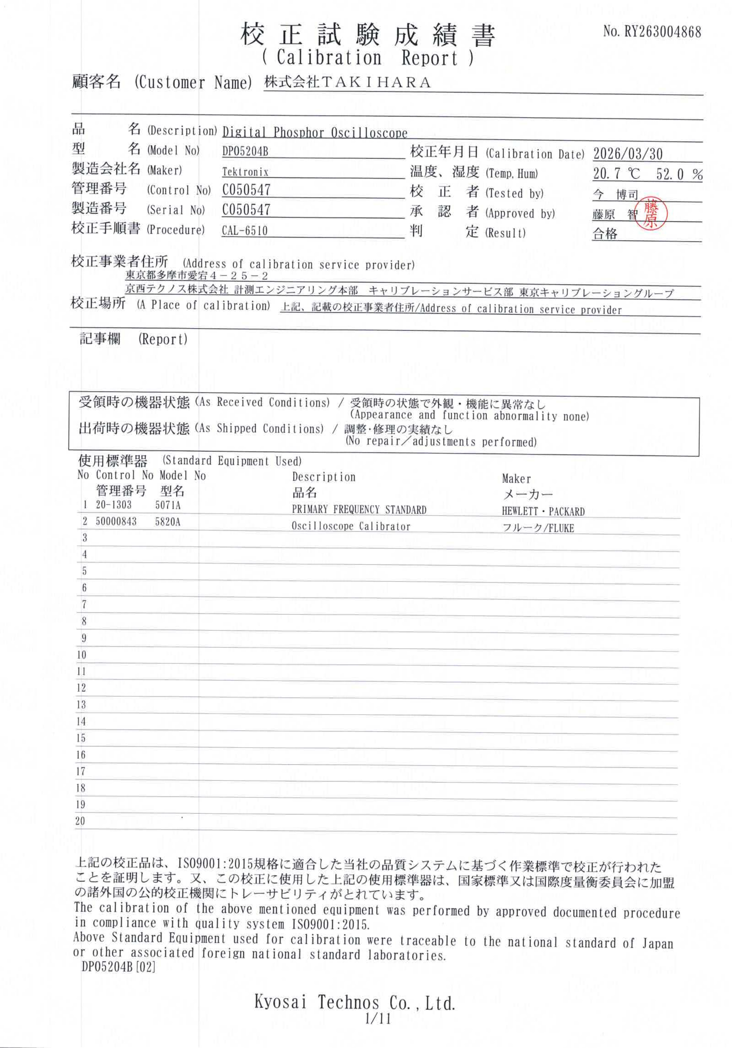 校正試験成績書付きです。