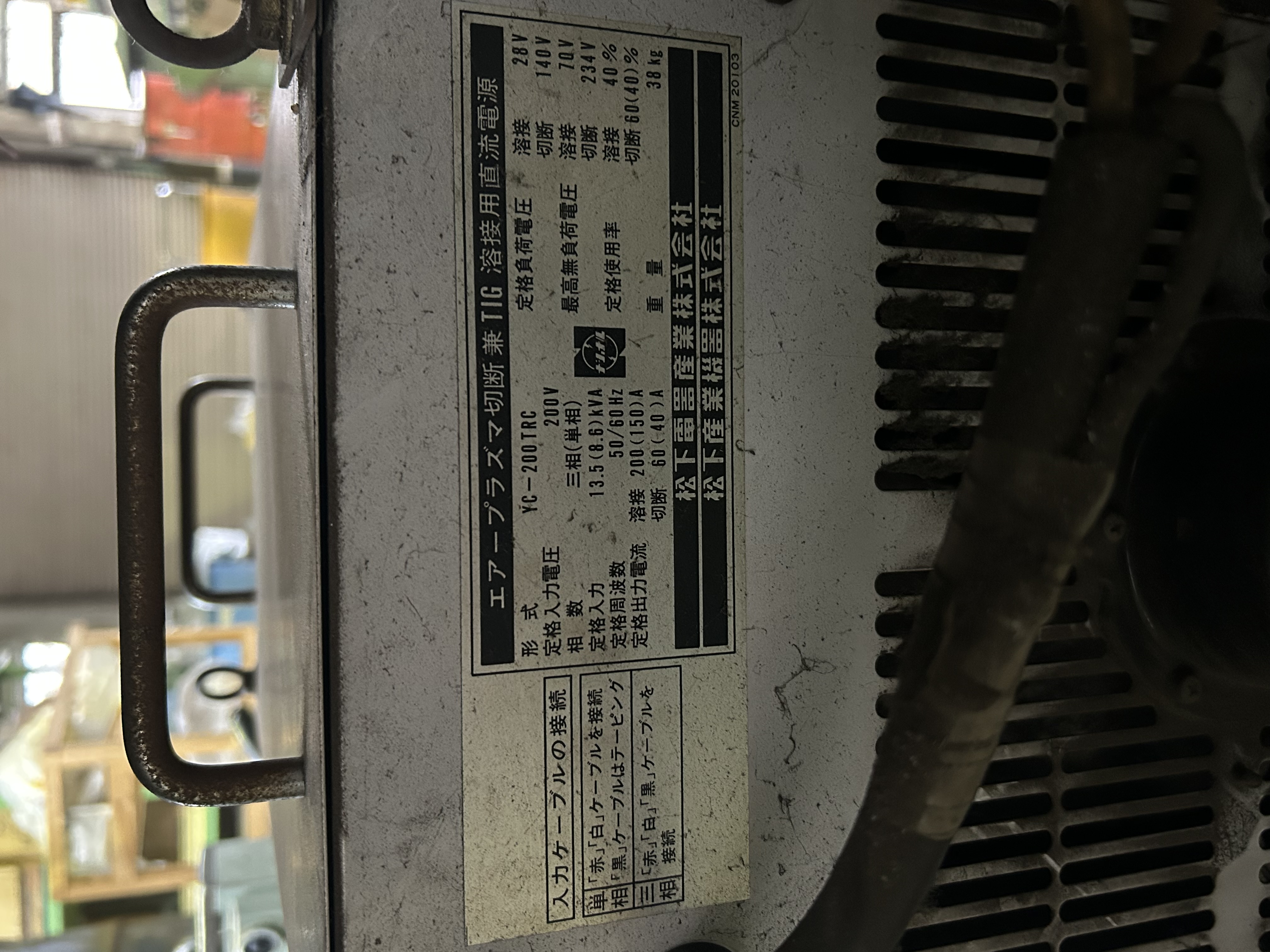 出力電流:TIG 4~150A/4~200A 切断10~40A/10~60A