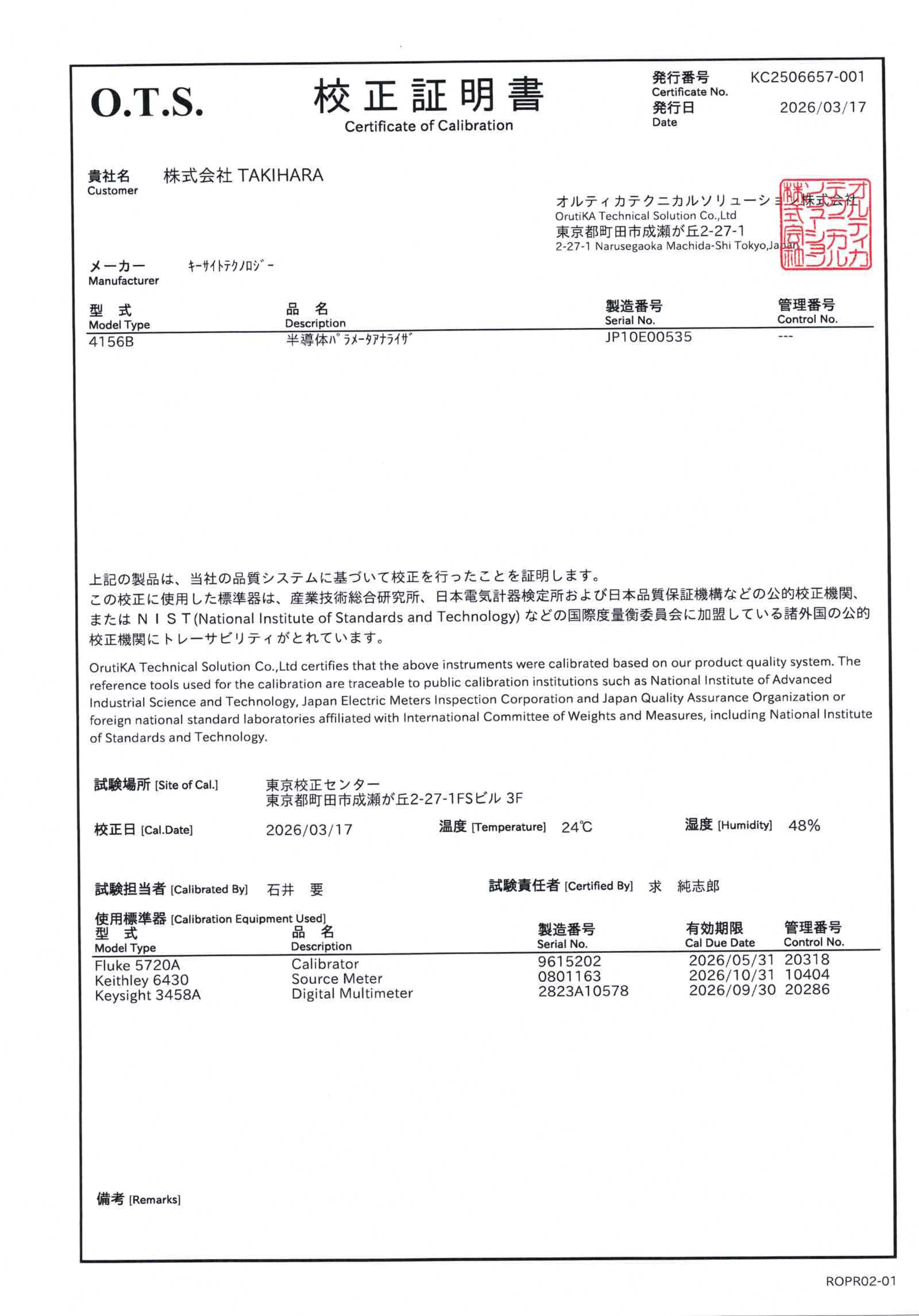 校正試験成績書付きです。